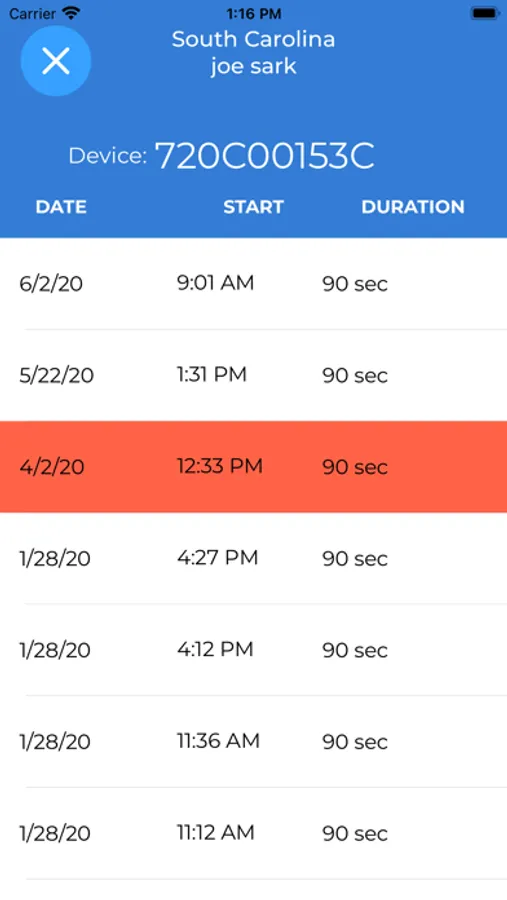 Drop down selection: The program manager may enter in drop-down selectable fields for pre-listing users, location, and specific uses and the user may then later select from among those options when using the device.