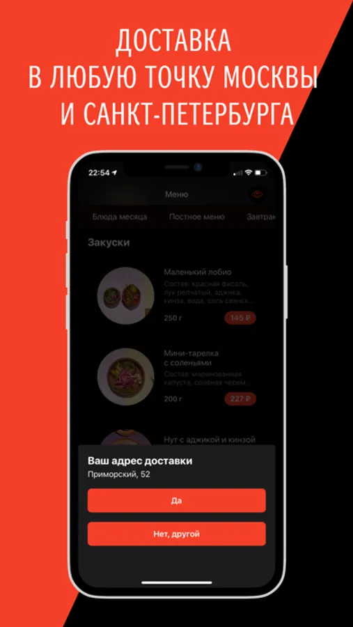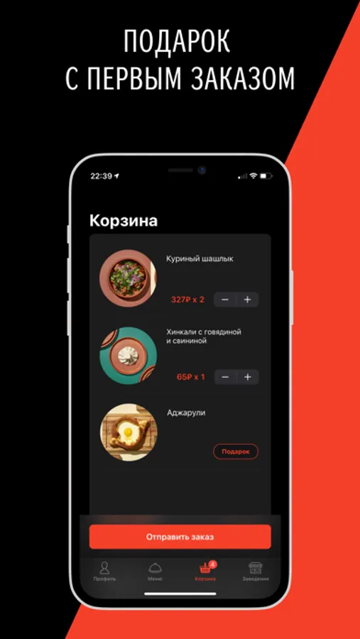 Мобильное приложение позволяет оформить самовывоз из ресторана, сделать заказ на домашний адрес, в офис или даже на природу, с возможностью оплаты онлайн и отслеживанием его статуса в реальном времени.