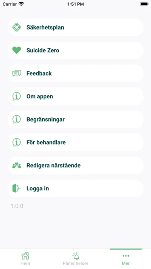 Min Livlina är avsedd som ett verktyg för självhjälp och inte som en ersättning till professionell behandling. Appens centrala funktion Säkerhetsplanen är en kopia av den fysiska individuella säkerhetsplanen som tas fram i dialog mellan dig och din behandlare. Om du själv mår mår dåligt och har självmordstankar är det viktigt att du söker hjälp.