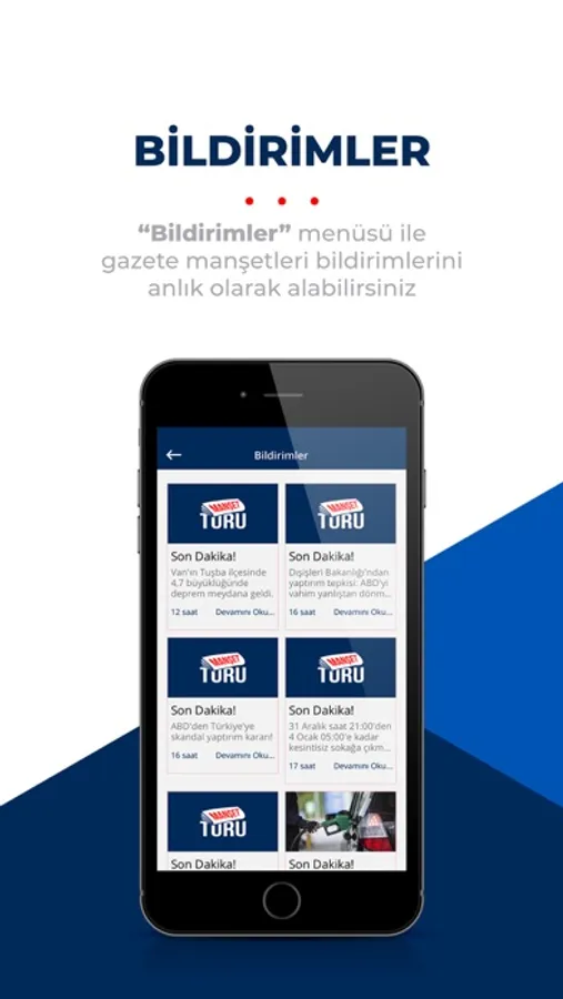 -“Bildirimler” menüsü ile güncel haber manşeti bildirimlerini anlık olarak alabilirsiniz.