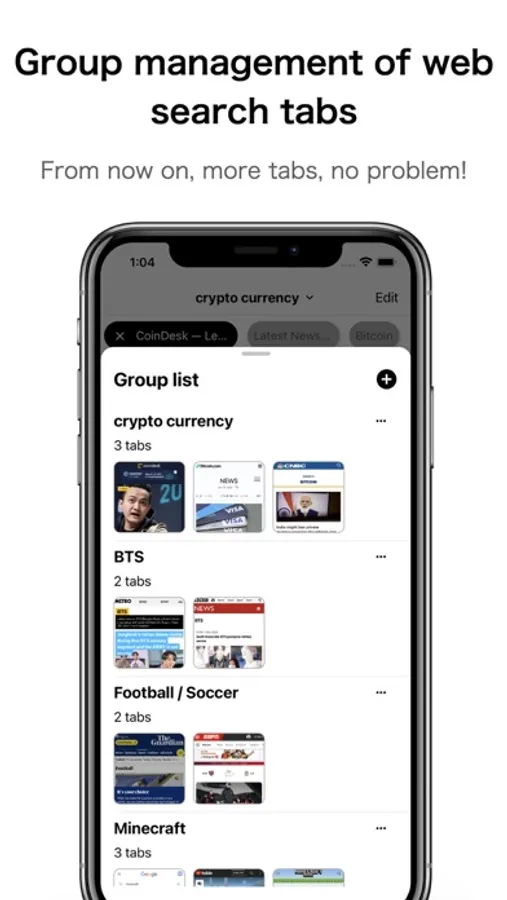 →If you open a web page in a group, you can quickly access the page you want by switching groups.