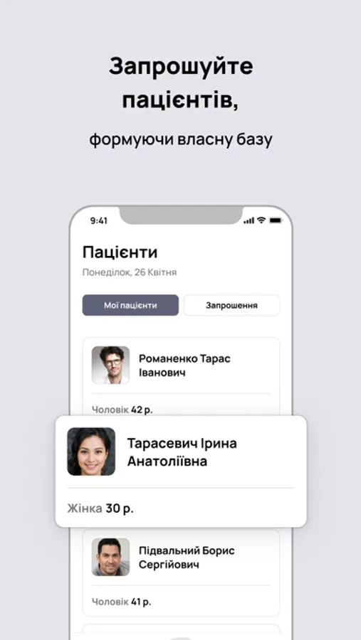 Формуйте свій графік, запрошуйте своїх пацієнтів в додаток МПЦ лікар, та проводьте онлайн консультації, формуючи особисту базу: