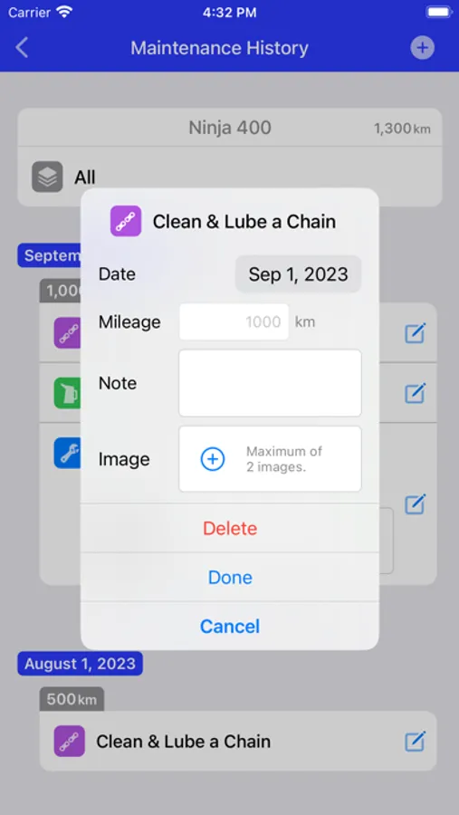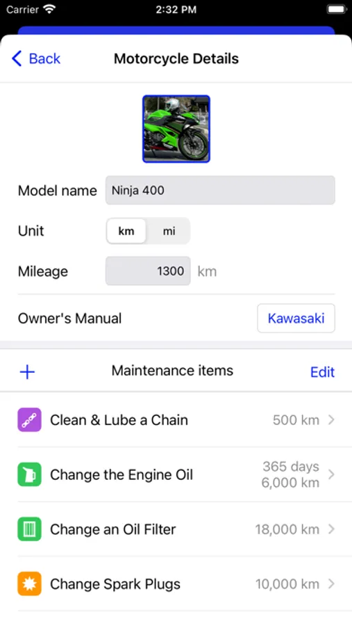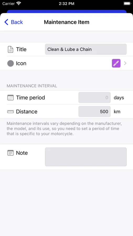 Note: The maintenance interval for your bike depends on the make, model, and usage, so you need to set the appropriate period for your bike.