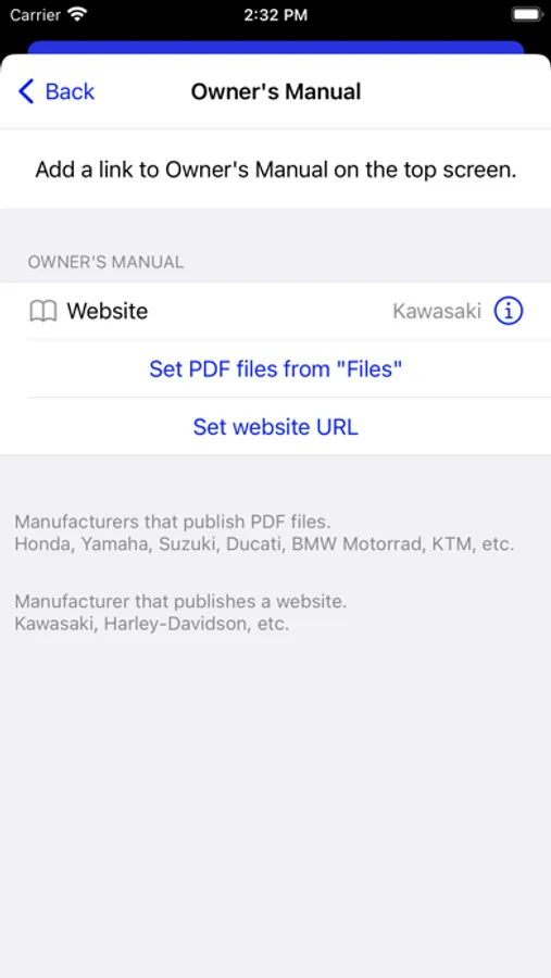 - Owner's Manual can be registered and displayed from the button on the top screen.