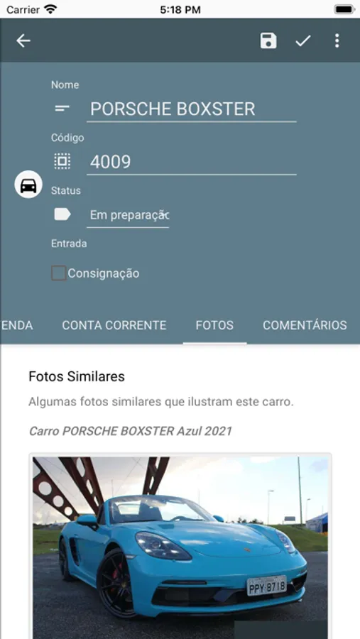 Acompanhamento e gestão da loja automotiva