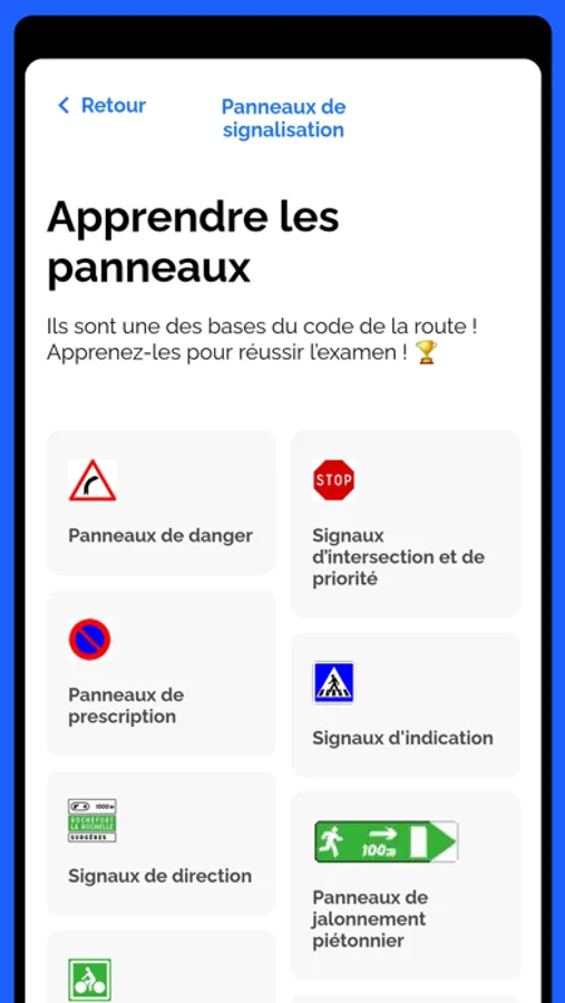 - Un suivi de votre progression. Vous avez la possibilité, dès que vous le souhaitez, de revenir sur les tests effectués. Apprenez de vos erreurs pour aborder sereinement l’examen officiel du code de la route.