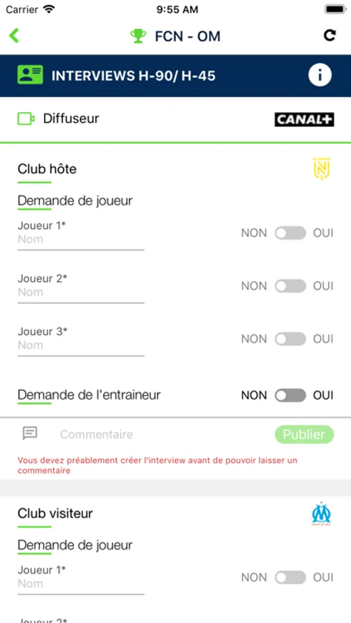 L’application permet aux diffuseurs de proposer aux clubs leurs demandes d’interview.