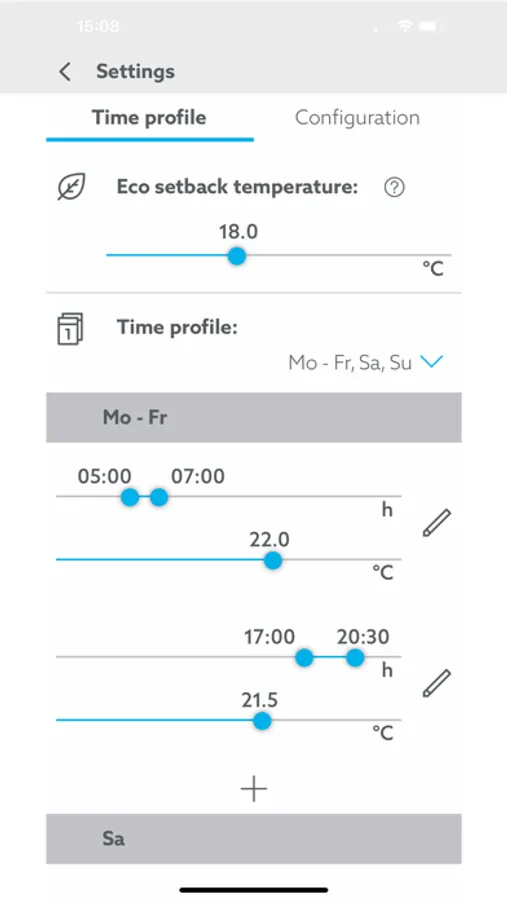 Eco mode: The temperature is constantly regulated to the “Eco setback temperature”