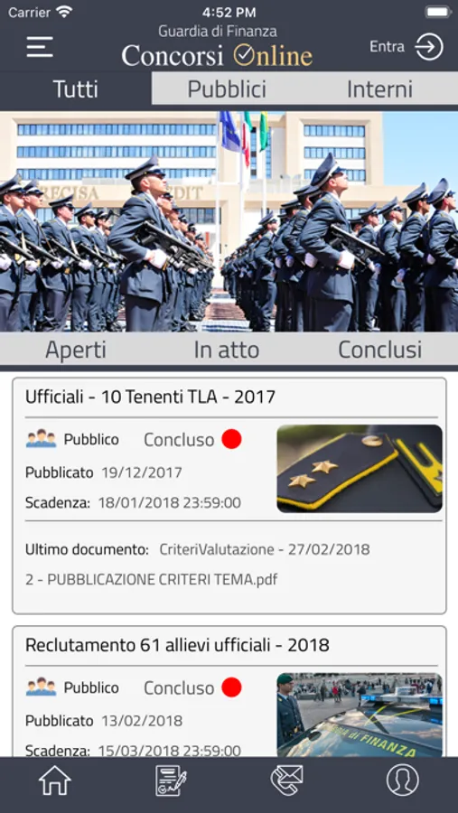 Applicazione ufficiale della Guardia di Finanza, compatibile sia con dispositivi smartphone che tablet, che permette all'utente di consultare le notizie relative alle procedure concorsuali del Corpo. Attraverso un’interfaccia semplice e intuitiva, è possibile consultare tutti i documenti pubblicati sul portale istituzionale https://concorsi.gdf.gov.it/, ivi compresi i bandi di concorso, le convocazioni e gli esiti.