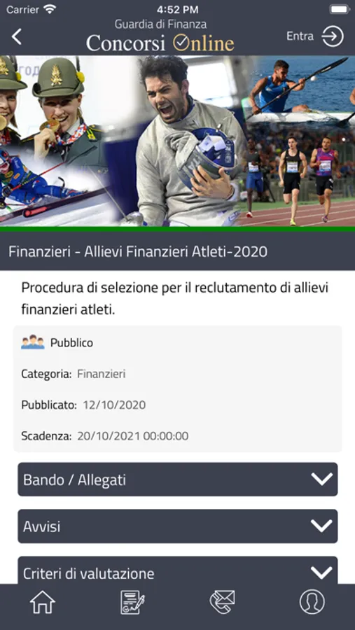 Gli utenti già registrati al citato portale, possono effettuare l’accesso alla propria area riservata, mediante l’inserimento all’interno dell’App delle stesse credenziali utilizzate per la registrazione al portale, dove è possibile consultare le istanze di partecipazione e la propria posizione all’interno delle singole procedure concorsuali.
