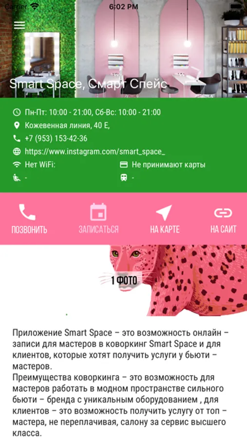 Приложение Smart Space – это возможность онлайн – записи для мастеров в коворкинг Smart Space и для клиентов, которые хотят получить услуги у бьюти – мастеров.