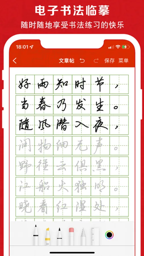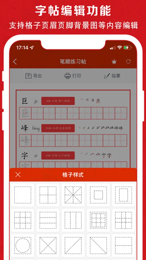 ·高度自定义字帖样式,包括颜色、页眉、页脚、背景图、格子样式等;