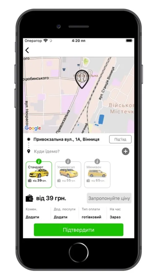 Слідкуй за прибуттям водія в реальному часі за допомогою карти.