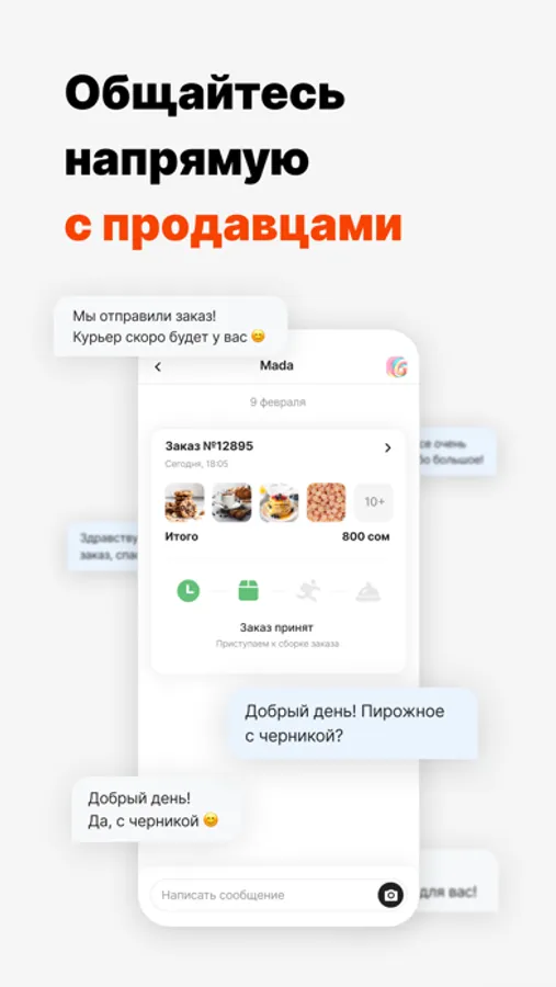 Каждый оформленный заказ также попадает в чат с бизнесом: вы можете вместе следить за статусом оплаты, доставки, обмениваться фотографиями товаров, дополнять заказы, и обсуждать другие детали, не выходя из чата.