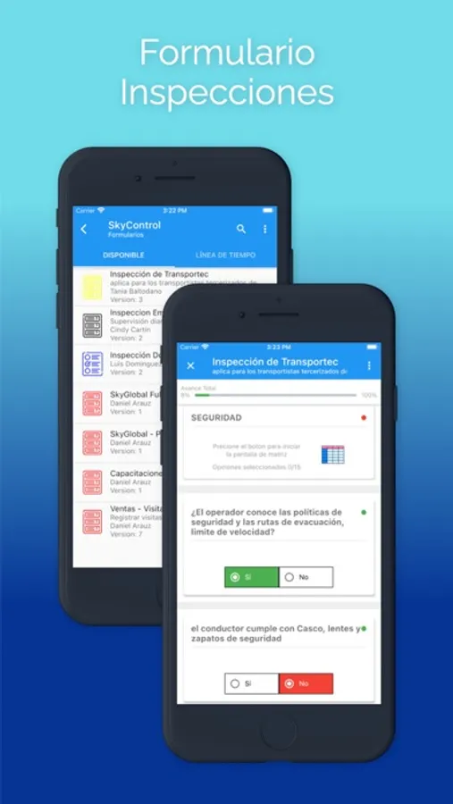 - Linea de tiempo de formularios o inspecciones enviados, pendientes de enviar o borradores
