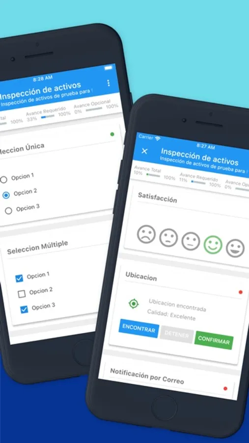 Realice encuestas y/o inspecciones a sus activos. Recolecte diferentes tipos de datos gracias a los múltiples tipos de preguntas disponible, incluya fotografías o comentarios y también generar tiquetes automáticamente con respuestas en específico.