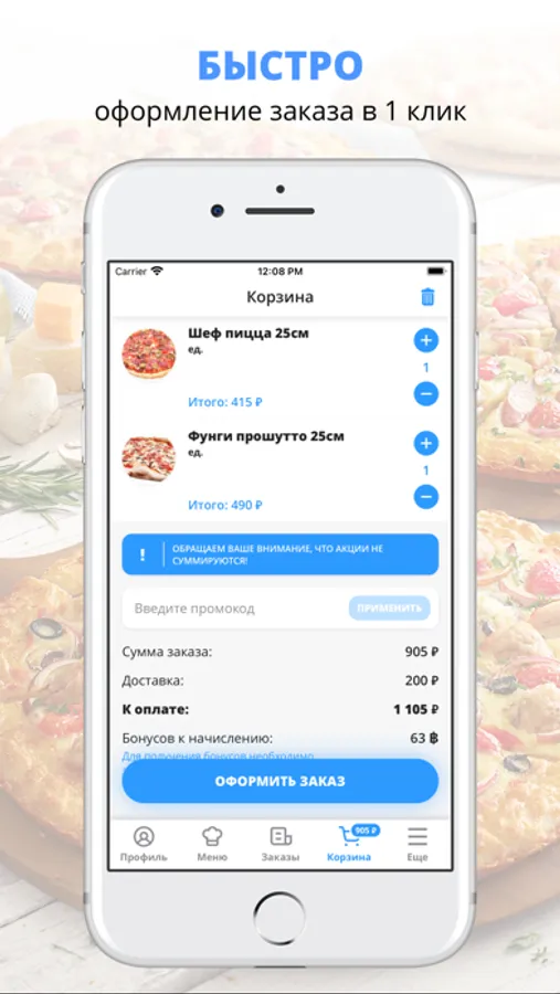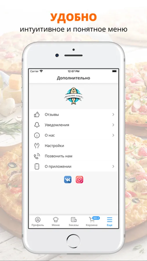 Скачивайте наше приложение, оформляйте заказ и наслаждайтесь любимой едой, где бы Вы ни были! Приятного аппетита!