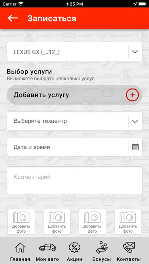 В приложении можно записаться на сервис или техническое обслуживание.