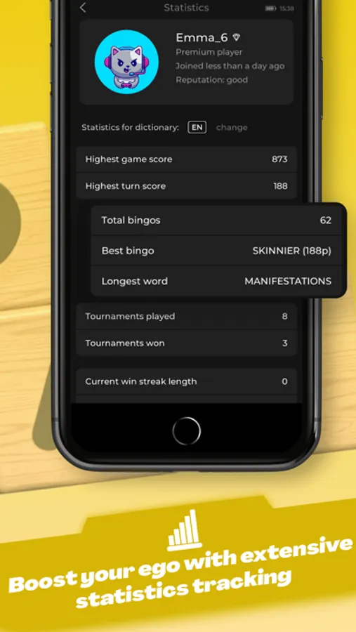 Enjoy unique game modes, including a special mode with bonuses for long words, tournaments, and a wide range of dictionaries for hours of entertainment.