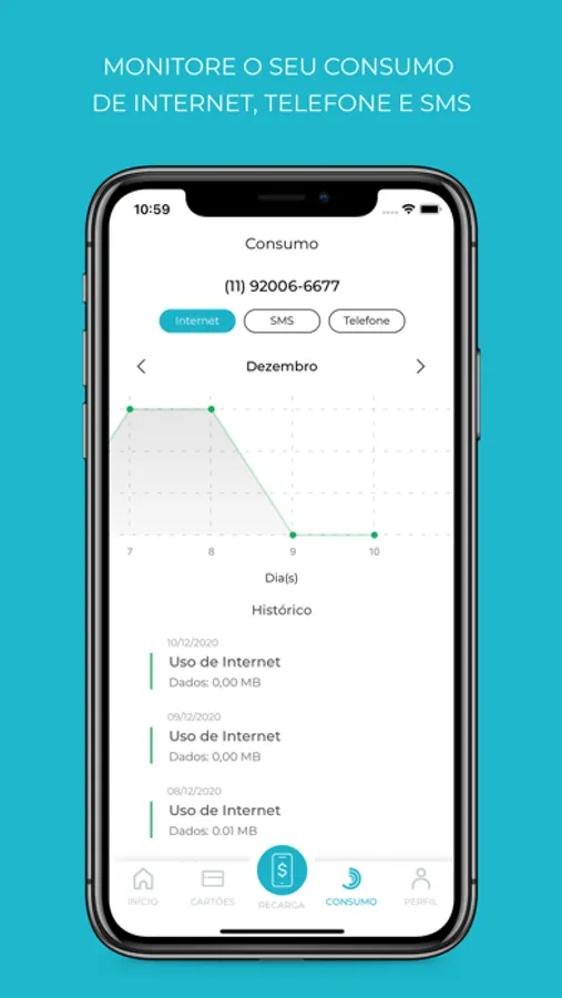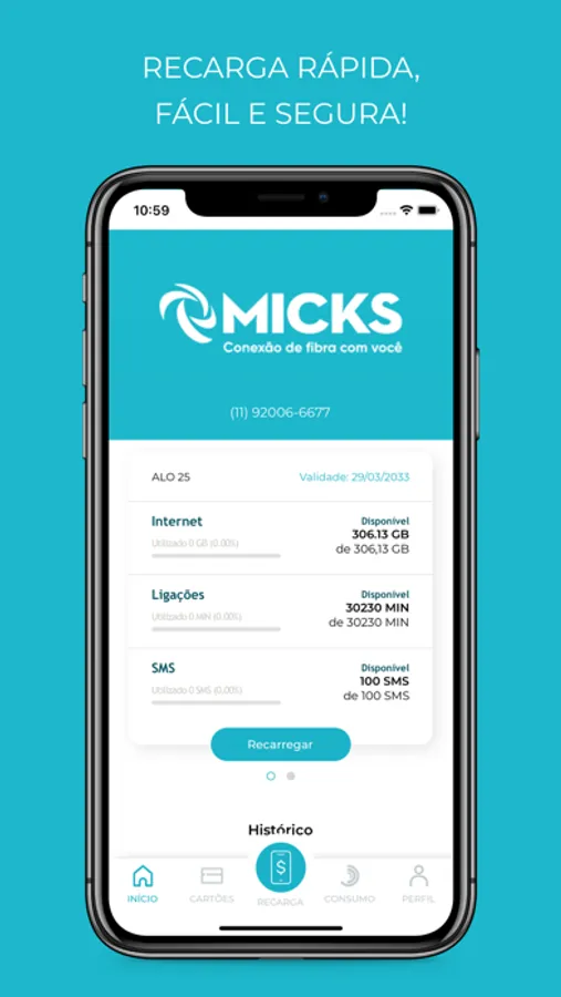 - Histórico das recargas realizadas online (aplicativo, site Micks e por SMS).