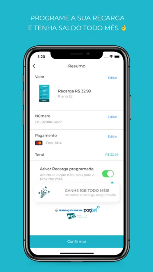 - Permissão para que o aplicativo faça e gerencie chamadas telefônicas, necessária para a consulta de saldo (voz, dados e de recarga);