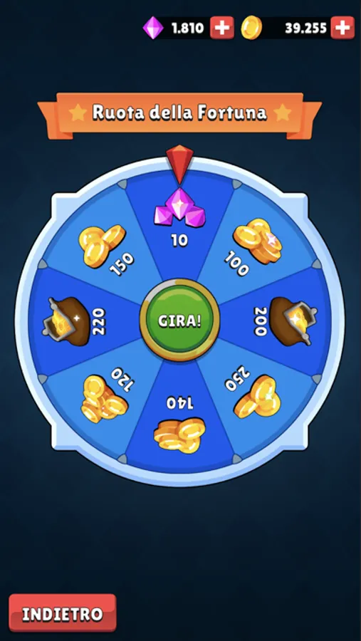 Ogni giorno potrai girare la ruota della fortuna e ottenere gratis monete!