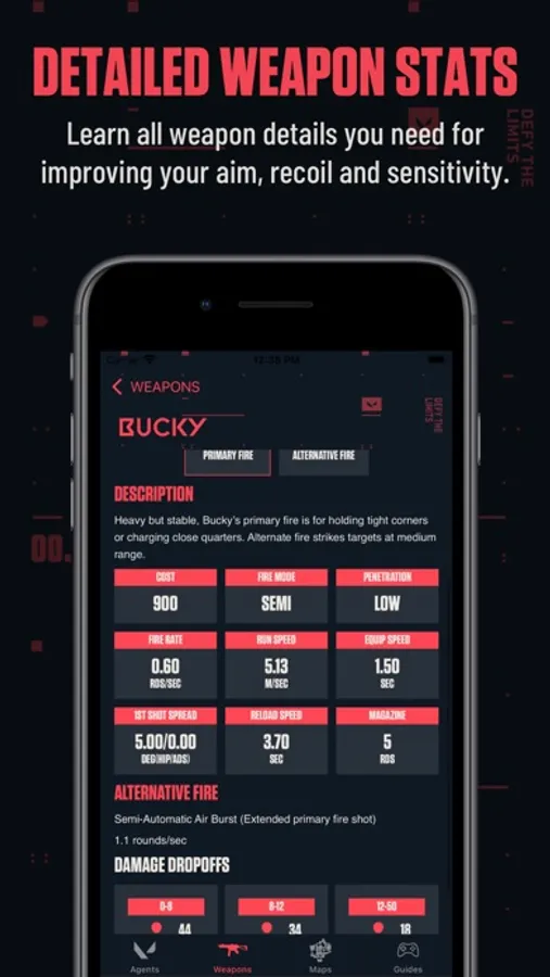 Know your weapon's close, mid and long-range damage. Find the best weapon for your game and spray style by learning their stats. Destroy your ranked games, no matter the loadout.