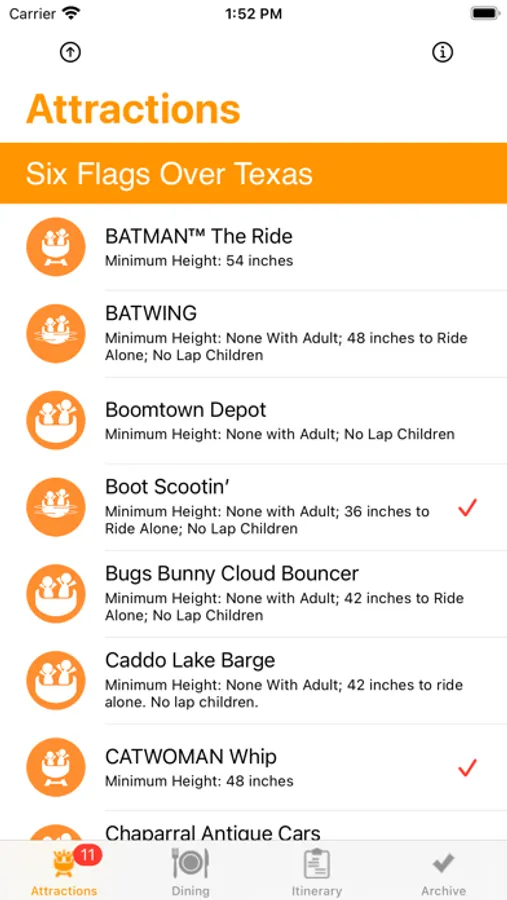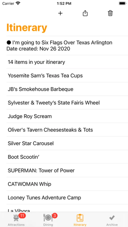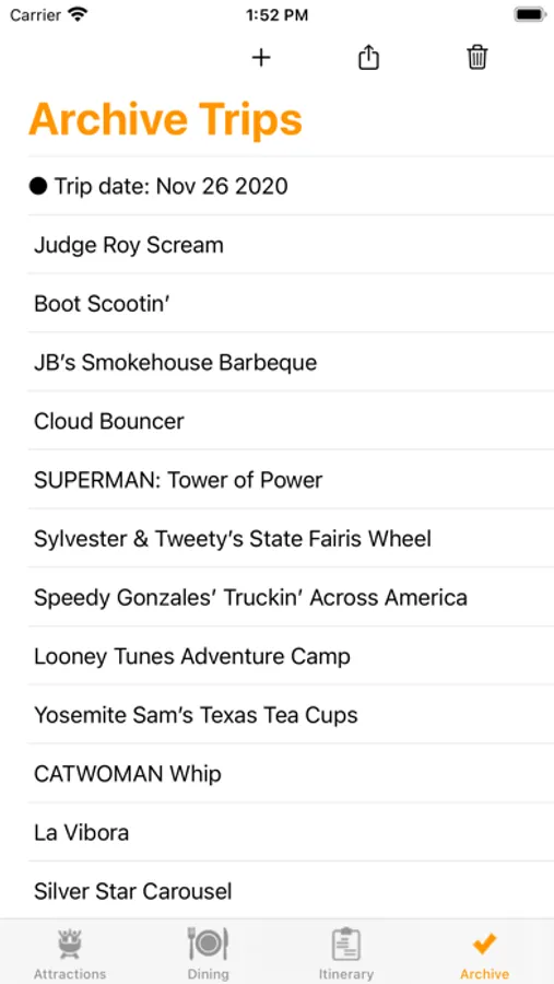 Theme Park Checklist is a TravelGuide checklist app for preplanning, checking off, or highlighting experiences during your trip. You can create an itinerary list and archive your trips too. Plus you can share your itineraries or archived checklist with friends and family.