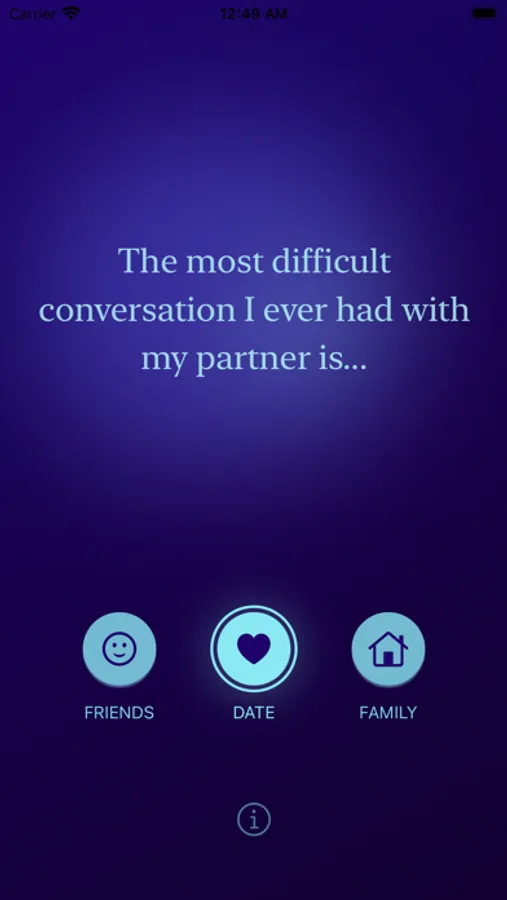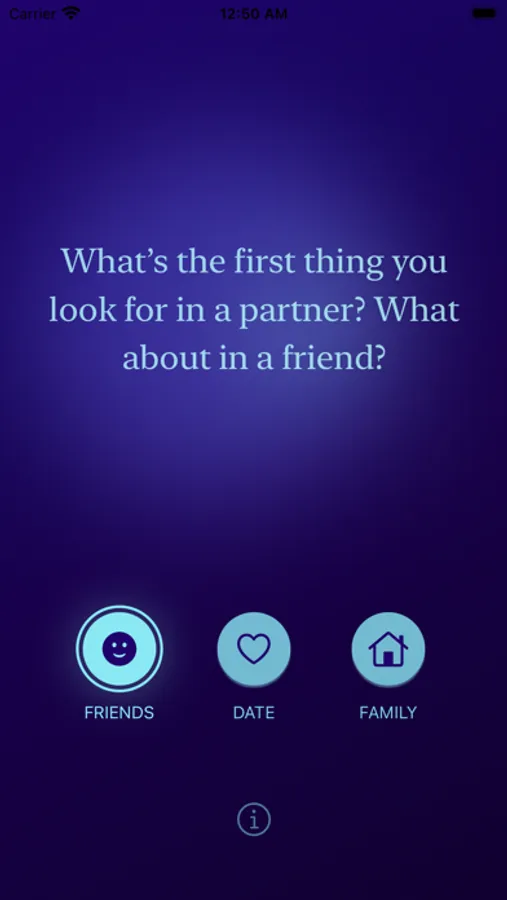 With questions categorized by Friends, Dates, and Family, easily navigate different categories and find the perfect question for any occasion.