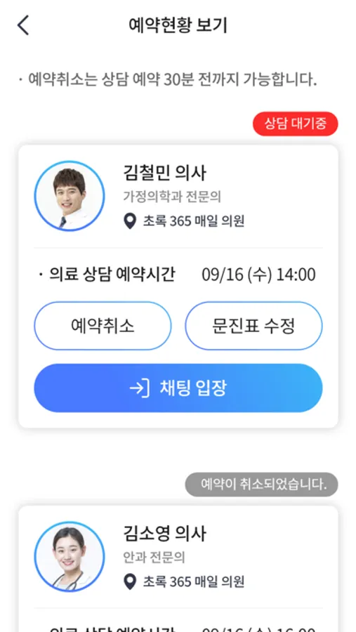 의사와 온라인 예약이 되면 , 채팅, 화상통화를 통해 의료 상담을 받는 시스템입니다.