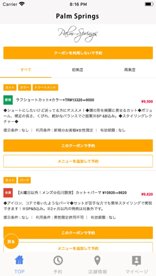 お得なクーポンが配信されます。ネット予約時にクーポン利用での予約も可能なので来店時もスムーズに施術頂けます。