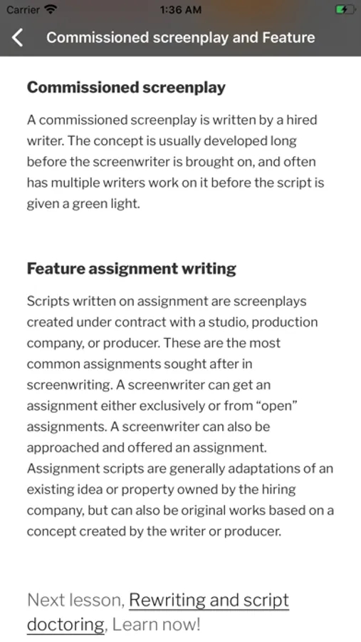 * Feature assignment writing - Scripts written on assignment are screenplays created under contract with a studio, production company, or producer.