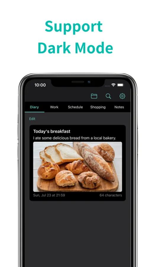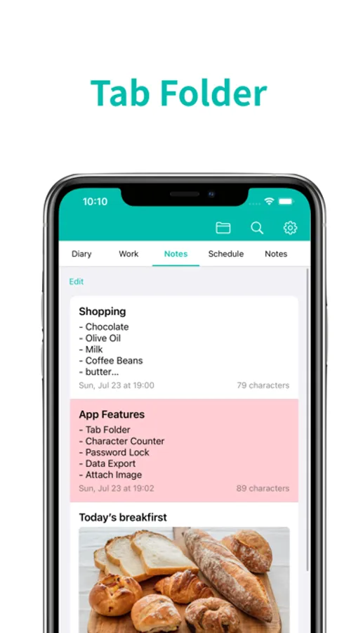 You can manage your notes in your favorite categories: diary, work, wants, class notes, hobbies, etc.