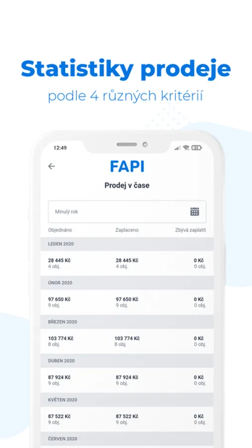 - Přehled prodejních výsledků za vybrané období v číselném i grafickém vyjádření.