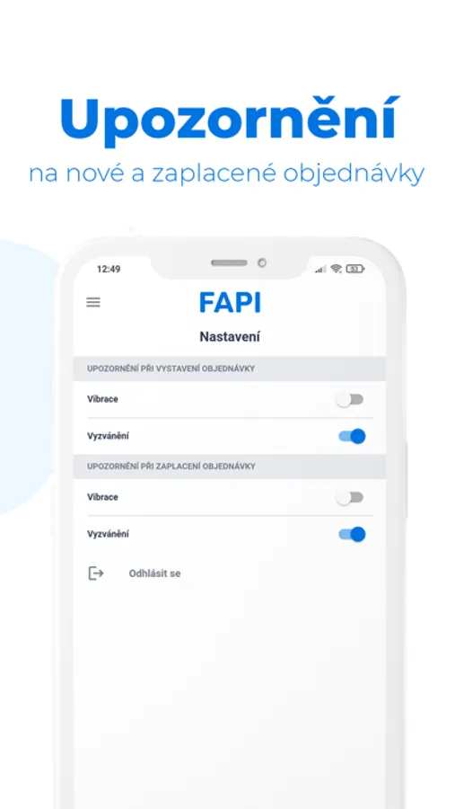 - Upozornění na nové objednávky a přijaté platby.