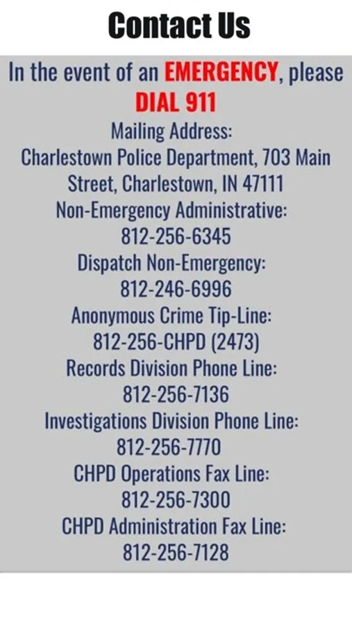 The mobile app that easily connects the residents of Charlestown, Indiana with their law enforcement agency....the Charlestown Police Department.