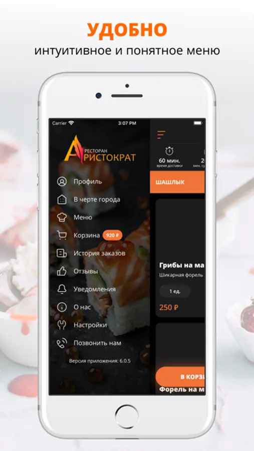 Заказывайте Ваши любимые блюда у нас, и Вы останетесь довольны качеством сервиса. У нас работают лучшие повара, а курьеры приятно порадуют вежливостью и быстрой доставкой.