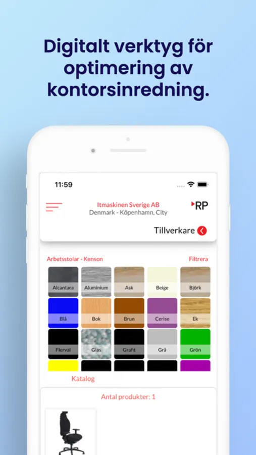 FIA RP är en smart och snabbt verktyg för dig som vill sälja dina kontors möbler på en smidigt sätt: välj bland en stor katalog av produkter från olika tillverkare eller ladda upp en bild om dina möbler till salu, och dina produkter ska bli publicerat på varan platform omedelabart