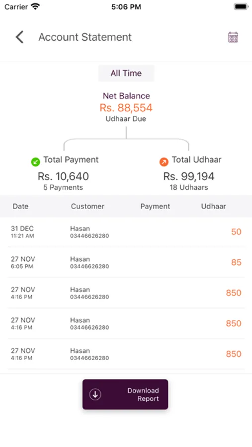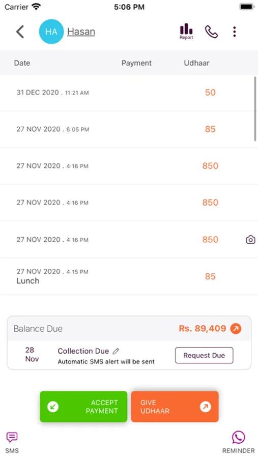 With Udhaar Book, you can share Free PDF reports, see running balance, and always be on top of your Creditbook / Khatabook.