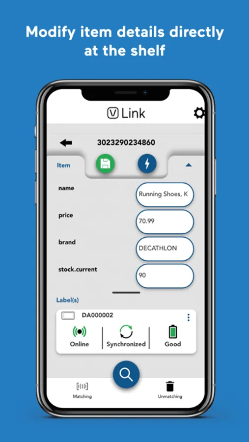 Look for your product in the store and find them easily thanks to the label flash. Change your items details and prices in real-time and increase your customer satisfaction with always up-to-date product information.