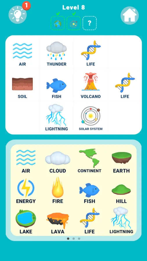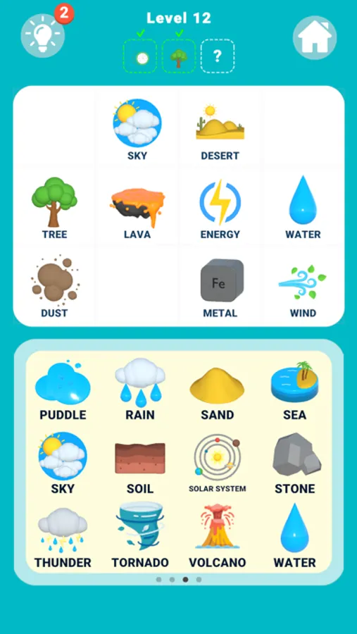 - Start with simple elements: Earth, Fire, Water, Air and Wind.