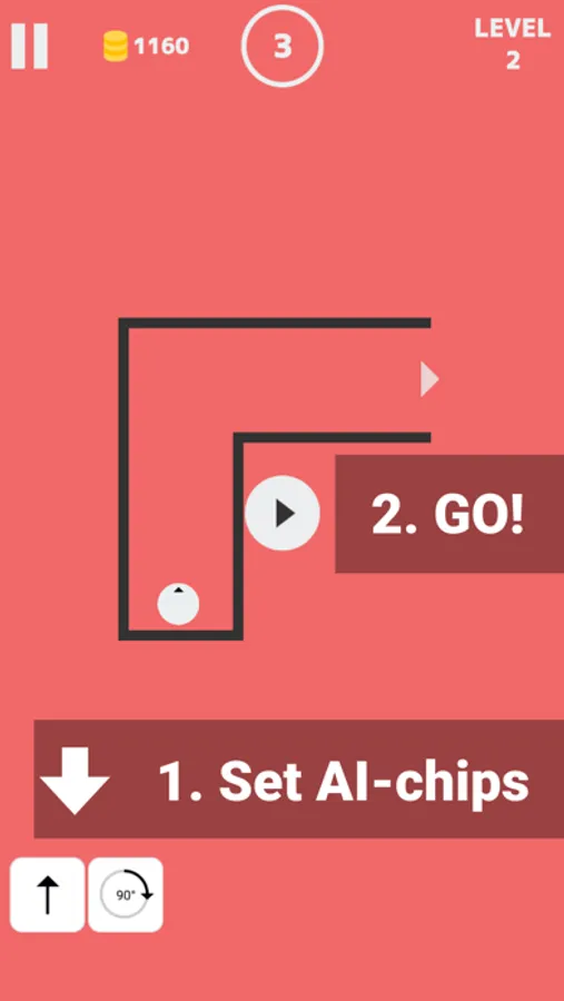 It is a puzzle game that guides the robot to the goal by combining AI chips.