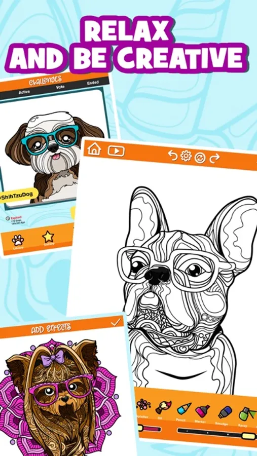 Dog Coloring Book for Adults is an excellent coloring application, imitating real coloring experience