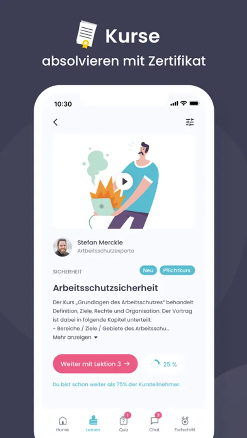 - absolviere Tests und greife jederzeit auf deine Zertifikate zu