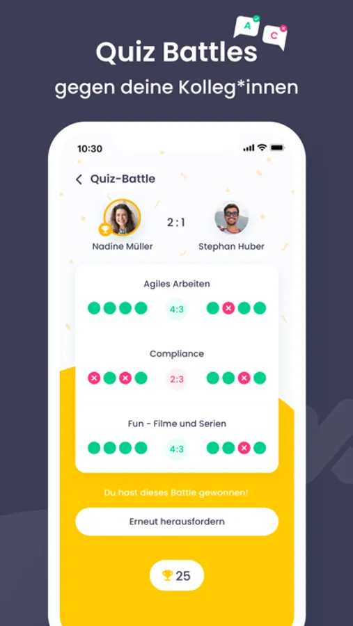 - prüfe dein Wissen und fordere andere User zum Quiz-Battle heraus