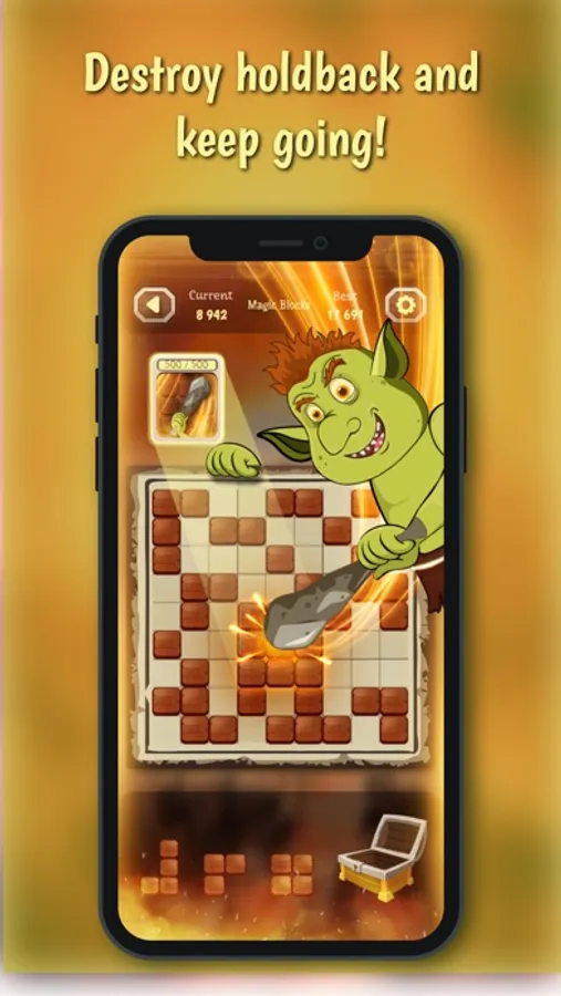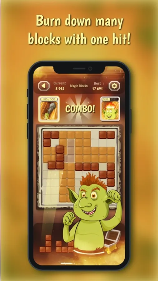 drag the bricks to full lines on the grid vertically or horizontally, or to fill the blocks and the orcus will help you clear the grid so you can continue the fun game.