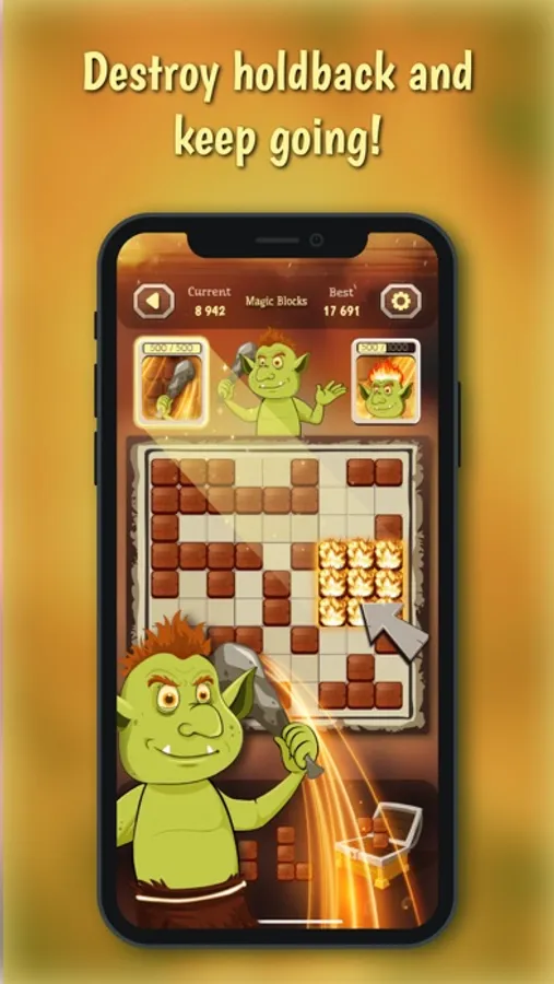 You start with the default hero – orcus that will guide you through the game, help you clear the board by destroying the blocks and clearing up the field.