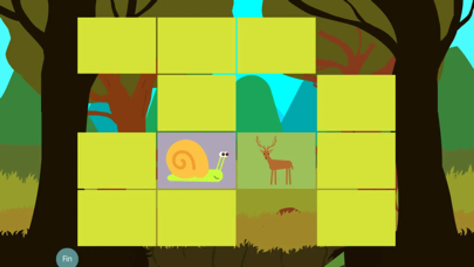 Funciona com el clàssic joc de memòria però en aquest cas haurem de fer coincidir les paraules escrites amb els seus dibuixos corresponents. Amb l'opció de dos jugadors quan un d'ells encerta suma un punt i repeteix torn. A l'acabar guanya el jugador amb més punts.