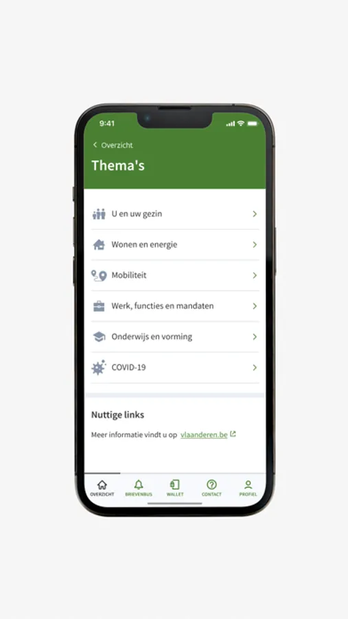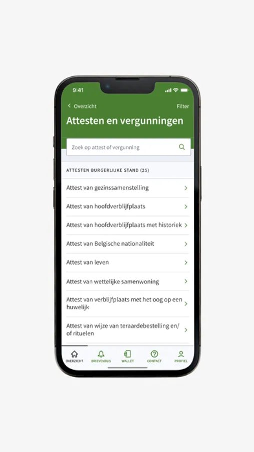 Alle functionaliteiten van de algemene app Mijn Burgerprofiel van de Vlaamse overheid zijn ook terug te vinden in de versie van Sint-Pieters-Leeuw.