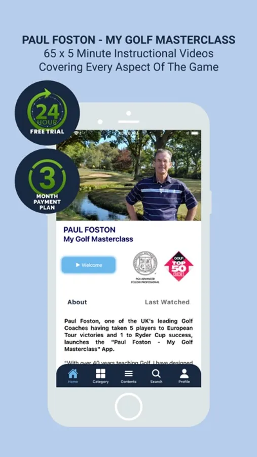 Having taken 5 Players to European Tour victories and 1 to Ryder Cup success, ‘Paul Foston - My Golf Masterclass’ App, will enable every Golfer to enjoy first class coaching at an affordable price.